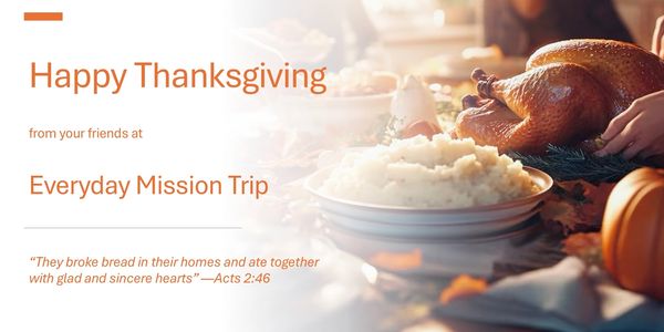 As we approach this season of gratitude, your friends at Everyday Mission Trip want to wish you and your families a very warm and blessed Happy Thanksgiving. We are deeply thankful for your continued prayers, partnership, and passion for reaching the lost for Jesus Christ. Your encouragement and support fuel the mission every day, and we pray the LORD fills your homes with joy, peace, and His abundant goodness this week.